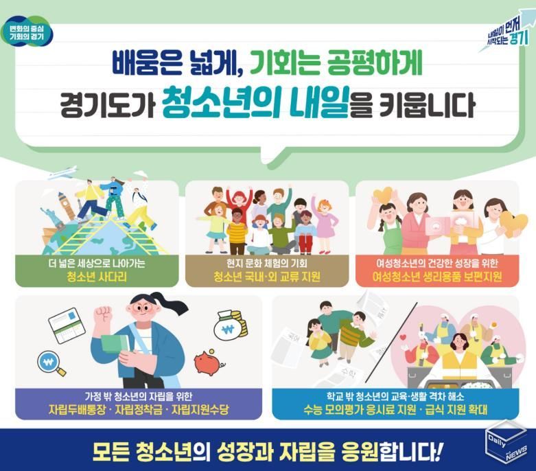 e데일리뉴스 | 경기도가 청소년의 건강한 성장과 배움 기회, 생활 안정을 위해 급식, 학습·진로·자립 지원까지 아우르는 다양한 정책을 추진한다.