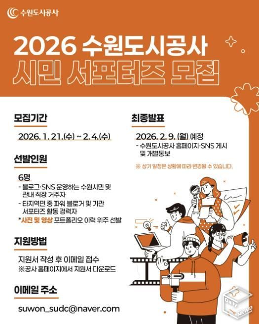 e데일리뉴스 | 수원도시공사가 21일부터 다음 달 4일까지 2026년도 제8기 시민 서포터즈를 모집한다.
