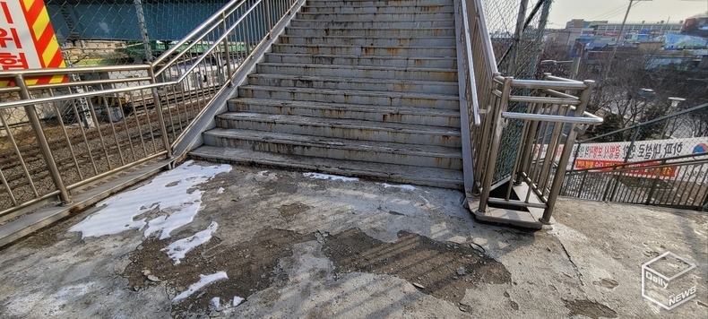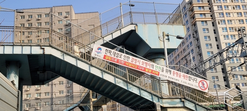 보행 안전 역시 문제로 지적된다. 하행선 출입구 인근 육교와 연결되는 구간에는 에스컬레이터가 설치되지 않았고 육교 통로 전반에 캐노피와 측면 차폐 시설이 없어 비와 눈에 그대로 노출된다. 겨울철 결빙 시에는 안전 문제를 이유로 출입을 제한하는 안내문까지 붙어 사실상 ‘이용 불가 구간’이 되는 경우도 있다. 한 제보자는 “공간상 설치가 가능함에도 철도 구조물 안전성을 이유로 수년째 검토만 반복되고 있다는 점에서 행정의 소극적 대응을 그대로 볼 수 있다”는 비판의 목소리가 나온다.
