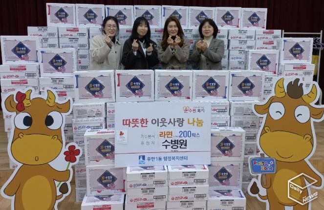 e데일리뉴스 | 수병원은 지난 4일, 설 명절을 맞아 어려운 이웃들을 위해 라면 200박스를 우만1동 행정복지센터에 기부하며 이웃사랑을 실천했다.