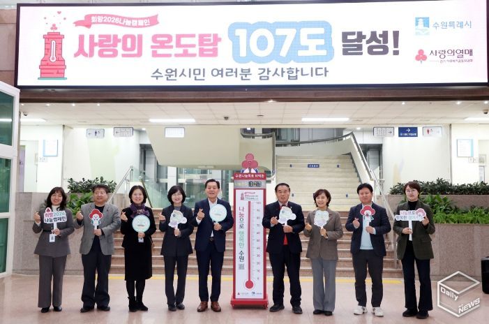 e데일리뉴스 | 수원특례시의회는 2월 5일, 시청 본관 1층 로비에서 열린 ‘사랑의 온도탑’ 폐막식에 참석해 시민과 함께한 나눔의 의미를 되새겼다.