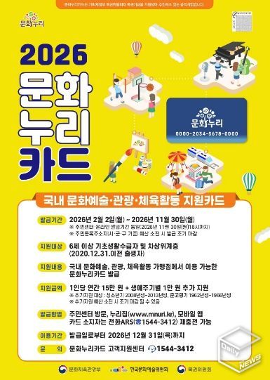 문화누리카드 발급은 가까운 행정복지센터를 방문하거나 문화누리카드 누리집과 모바일앱을 통해 11월 30일까지 발급 신청할 수 있으며, 사용 기한은 12월 31일까지다. 지난해 3만 원 이상 사용한 이력이 있고 올해도 수급 대상 조건을 유지한다면 별도 신청 없이 자동으로 1만 원 인상된 지원금이 재충전된다.