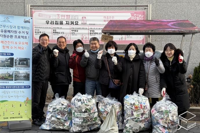 e데일리뉴스 | 수원시 장안구 연무동은 지난 6일, 반사모(반딧불이 연무시장 사랑 소모임)와 함께 연무시장 일원에서 유용생활폐자원을 수거했다.