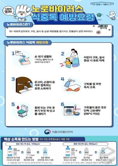 한편 경기도는 봄철‧겨울철 주로 발생하는 노로바이러스 확산을 막기 위해 지하수를 사용하는 식품취급업소를 대상으로 수질검사를 하고, 영유아 시설대상으로 환경 검사를 실시할 예정이다. 노로바이러스 검출 시에는 청소와 소독 등으로 오염원을 제거하고 재검사를 통해 안전성을 확보할 방침이다.