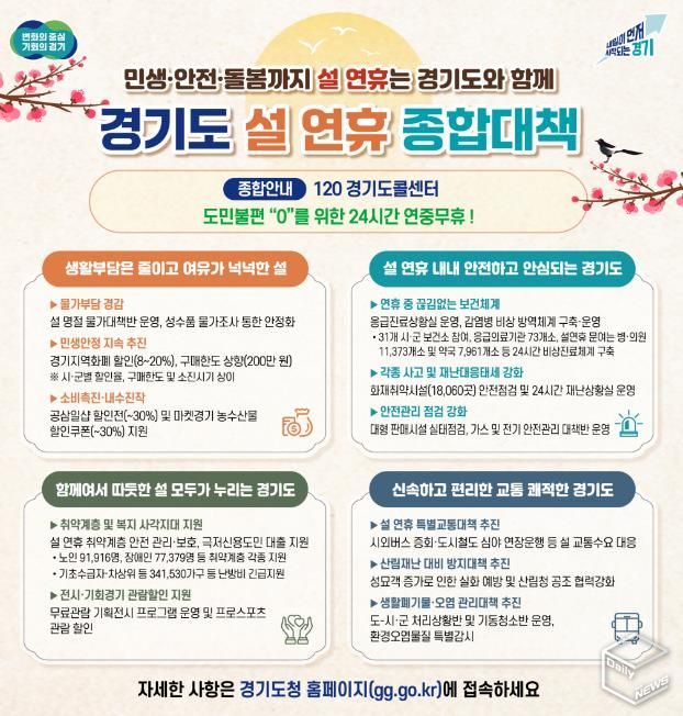 e데일리뉴스 | 경기도가 도민들이 따뜻하고 편안한 명절을 보낼 수 있도록 ‘설 연휴 종합대책’을 추진한다.