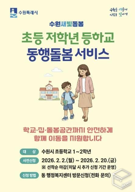 e데일리뉴스 | 수원특례시가 ‘초등 저학년 등하교 동행돌봄서비스’ 사전 신청 기간을 운영한다.