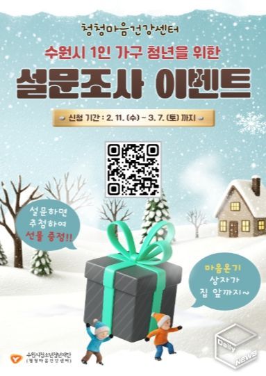 e데일리뉴스 | 수원시청소년청년재단(이사장 최종진)은 정서적 응원이 필요한 1인 가구 청년을 위해 '2026. 1인 가구 청년 정서지원 사업' 참여자를 2월 11일부터 3월 7일까지 모집한다고 밝혔다.