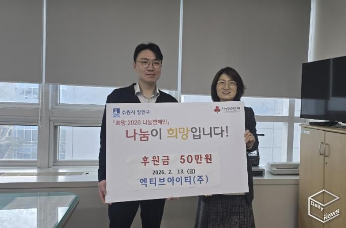 e데일리뉴스 | 수원시 장안구에 위치한 엑티브아이티(주)가 지난 13일, 설 명절을 맞아 후원금 50만원을 장안구청에 기부했다.