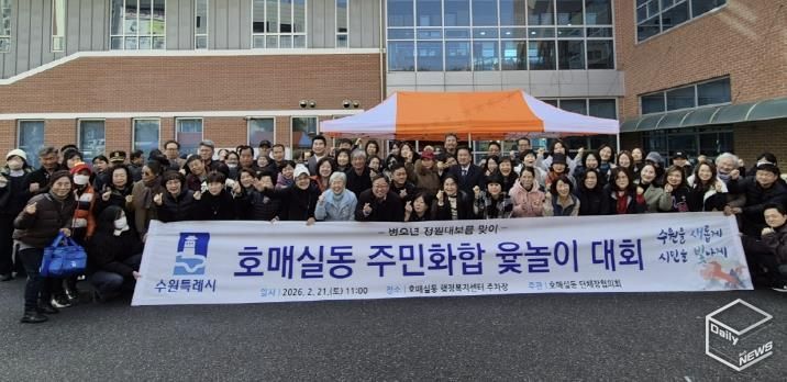 e데일리뉴스 | 수원시 권선구 호매실동은 단체장협의회 주관으로 지난 21일 행정복지센터 주차장에서 정월대보름을 맞아 마을의 풍요와 안녕을 기원하는 ‘2026년 호매실동 주민화합 윷놀이 대회’를 성황리에 개최했다.