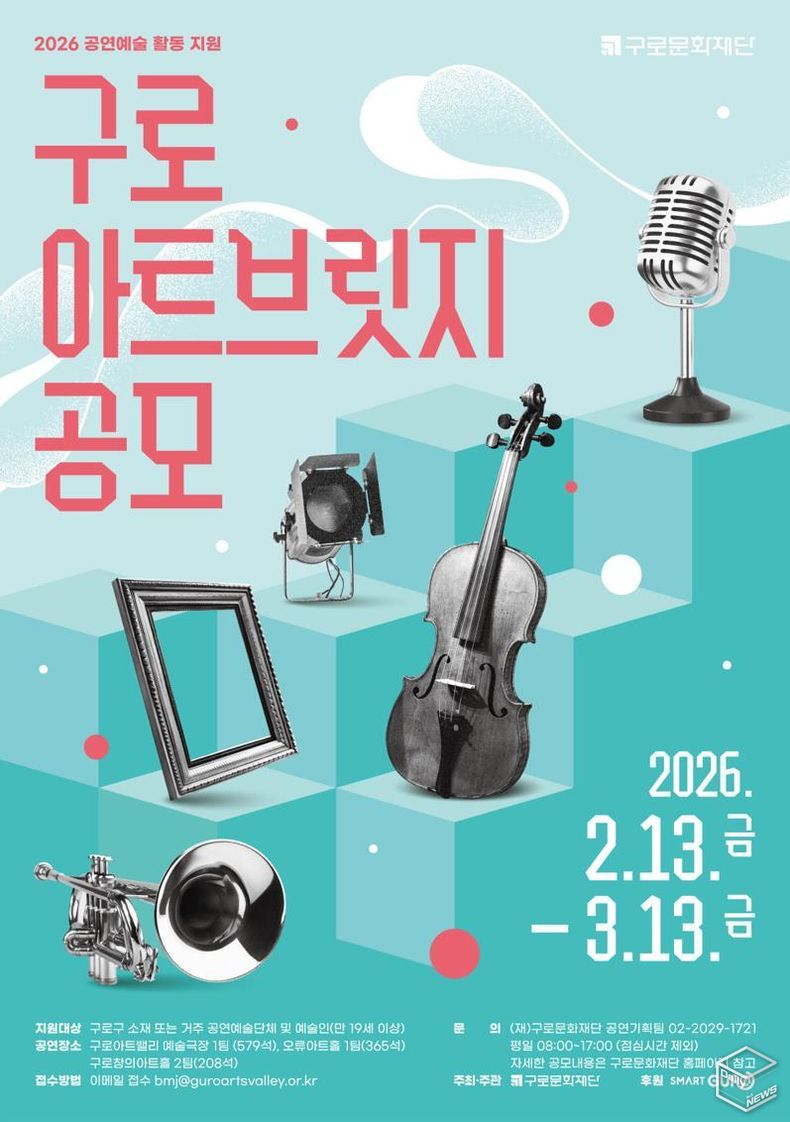 공모 접수는 2026년 2월 13일부터 3월 13일 오후 5시까지 이메일로 진행되며, 서류 심의를 거쳐 최종 결과는 3월 20일 구로문화재단 홈페이지를 통해 발표된다.