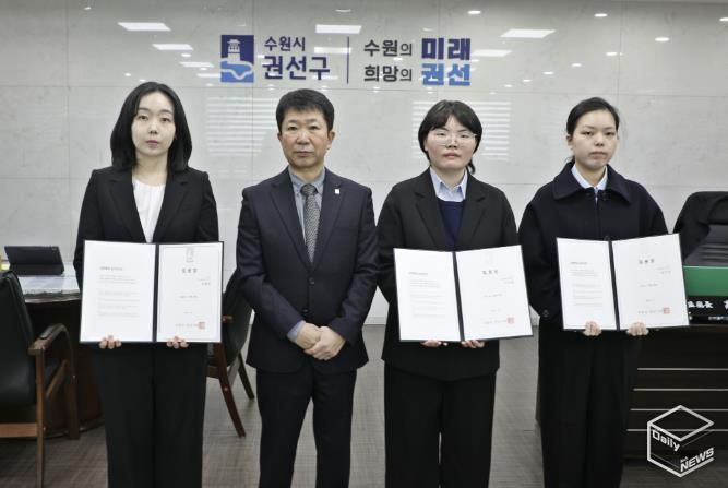 e데일리뉴스 | 수원시 권선구는 지난 5일, 권선구청 2층 집무실에서 신규 공직자 3명이 참석한 가운데 임용장 수여식을 개최했다.