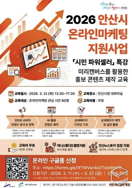 e데일리뉴스 | 안산시는 급변하는 디지털 유통 환경에 대응해 시민들의 온라인 마케팅 역량 강화를 위한 ‘시민 파워셀러 특강’ 교육생을 모집한다고 12일 밝혔다.
