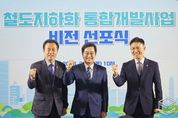 e데일리뉴스 | 경기도의회 건설교통위원회 김성수 의원(더불어민주당, 안양1)은 12일 안양역에서 열린 ‘철도지하화 통합개발사업 비전선포식’에 참석하여 경부선 안양 구간의 조속한 철도지하화사업 대상지 선정을 촉구하고 강력한 추진 의지를 피력했다. 경기도가 주관한 이날 선포식에는 김성수 의원을 비롯해 김동연 경기도지사, 이계삼 안양시 부시장, 지역 주민들이 참석했다. 행사에서는 ‘지도에는 있지만 쓸 수 없었던 지상 철도 부지를 도민에게 돌려드린다’는 비전과 함께 경부선 안양 구간 철도지하화 사업의 추진 방향이 발표됐다. 김성수 의원은 축사를 통해 “경기도의회는 전국 최초로 철도지하화사업기금 조례를 제정하는 등 경기도와 안양시가 경부선 철도지하화사업을 힘 있게 추진할 수 있는 제도적 기반을 마련하고 있다”면서 “철도지하화사업 시작까지 ‘종합계획 선정’ 마지막 한 걸음을 남겨둔 만큼, 경기도의회-경기도-안양시가 하나 되어 멈춤 없이 노력해 온 결실을 맞이하자”고 목소리를 높였다. 이어 김 의원은 “수십 년간 안양을 동서로 단절시켰던 경부선 철도는 그동안 지역 발전의 큰 걸림돌이었다”고 지적하며, “이번 사업을 통해