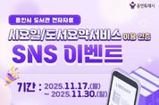 e데일리뉴스 | 용인특례시는 용인시도서관 전자자료인 시요일과 도서요약서비스 이용자를 대상으로 사회관계망서비스(SNS) 이벤트를 운영한다고 14일 밝혔다. 도서관 정회원이면 누구나 참여할 수 있다. 시요일, 도서요약서비스 이용 후 QR코드로 SNS 설문지 폼에 도서관 아이디와 이용 인증 화면 등을 입력해 제출하면 된다. 이벤트 참여 기간은 17일부터 30일까지다. 참여자 중 추첨을 통해 50명에게 커피 쿠폰을 지급한다. 당첨자는 12월 5일 SNS 공지·개별 통지할 예정이다. 시 관계자는 “온라인 전자자료 서비스에 대한 시민의 관심과 이용을 높이고, 디지털 독서 환경을 조성하고자 지속적으로 노력하겠다”고 말했다. 현재 시 도서관은 전자책, 오디오북, 학술원문, 뮤직라이브러리 등을 통해 약 48만 종의 다양한 전자자료 서비스를 제공하고 있다.