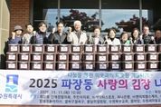e데일리뉴스 | 수원시 장안구 파장동 새마을부녀회는 11일, 지역 주민들과 함께 ‘사랑의 김장 나누기’ 행사를 열고 따뜻한 정을 나눴다. 이번 행사에서 새마을부녀회는 직접 김장을 하고 정성껏 포장해 기초생활수급자, 독거노인, 취약계층 250가구에 전달했다. 정성스럽게 준비된 김치는 겨울철 이웃들의 식탁에 온기를 더해줄 예정이다. 박용희 파장동 새마을부녀회장은 “김장은 단순한 음식 장만이 아닌 정성과 마음이 담긴 겨울 준비”라며 “이웃을 생각하며 함께 담근 김치가 어려운 분들께 따뜻한 위로가 되길 바란다”고 말했다. 장인영 파장동장은 “어려운 이웃을 위해 정성껏 김장을 준비해주신 새마을부녀회와 여러 단체 및 후원해 주신 분들께 감사드리며 파장동의 사랑과 정성이 잘 전달될 수 있도록 하겠다”고 전했다. 파장동은 매년 겨울을 앞두고 김장 나눔 행사를 통해 이웃 간의 온정을 나누고 있으며 올해도 지역 주민들의 자발적인 참여와 후원으로 더욱 풍성한 나눔의 장이 마련될 것으로 기대해 본다.