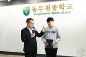 e데일리뉴스 | 김동연 경기도지사가 16일 동두천중학교를 찾아 노점 할머니께 비상금을 건넨 선행으로 화제가 된 옥현일 군에게 표창을 수여했다. 김 지사는 학교 현관에서 학생회와 함께 ‘함께라서 더 빛나는 우리’ 생명존중 캠페인에 동참하고, 이어 1층 로비에서 옥현일 군에게 표창장을 전달했다. 옥현일 군은 지난 7월 폭염 속에서 노점상 할머니에게 비상금 3만 원을 건네고 콩 한 봉지를 받은 사연이 알려지며 주목받았다. SNS에 게시된 영상은 인근 공방 운영자가 촬영한 것으로, 현일 군이 남모르게 베푼 선행이 담겨 3일 만에 206만 조회수, ‘좋아요’ 약 7만, 댓글 2,500개 이상을 기록했다. 당시 현일 군은 “더운 날씨에 할머니가 물건을 빨리 팔고 쉬셨으면 좋겠다는 마음이었다”고 말해 많은 시민에게 감동을 줬다. 김동연 지사는 이날 인사말을 통해 “옥현일 군이 도운 할머니가 우리의 어머니, 할머니”라며 “수많은 옥현일 군이 동두천중에 있다고 본다. 그것이 사람 사는 세상”이라고 말했다. 이어 “여러분이 그런 따뜻한 마음을 갖길 바란다. 당장은 남을 위한 배려 같지만 길게 봐서 인생