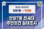 e데일리뉴스 | 행정동 명칭 변경 사업을 추진 중인 안양시가 만안구 안양7동의 행정동 명칭 변경을 위해 올해 12월 1일부터 내년 1월 31일까지 해당 동 전 세대를 대상으로 주민의견 실태조사를 실시한다고 1일 밝혔다. 이번 주민의견 실태조사는 안양7동의 행정동 명칭을 ‘덕천동’으로 변경하는 것에 대한 찬반 의견 조사다. 안양7동에 거주하는 전체 세대 중 60% 이상이 참여하고, 참여 세대의 과반수가 찬성할 경우 시는 명칭 변경을 추진할 예정이다. 조사방법은 올해 12월 1일부터 2026년 1월 31일까지 시 홈페이지를 통해 비대면 조사를 진행하고, 12월 18일부터 2026년 1월 31일까지 안양7동 행정동명칭변경추진위원회가 각 세대 방문조사를 병행하게 된다. 덕천(德泉)동은 어린이들이 샘물 솟듯이 씩씩하게 자라서 나라에 큰 일꾼이 되기를 바라는 뜻으로, 큰 덕(德)에 샘 천(泉)을 취해 붙여진 옛 지명이다. 시는 이에 앞서 지난 9월 12일부터 9월 30일까지 안양7동 주민들을 대상으로 행정동 명칭에 대한 선호도 조사를 진행했고, 조사에 참여한 646세대의 주민 중 52.9% 해당