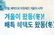 e데일리뉴스 | 경기도와 경기도주식회사가 공동 운영하는 경기도 공공배달앱 배달특급이 겨울을 맞아 12월 한 달간 ‘겨울이왔동(冬)’ 소비자 할인 프로모션을 진행한다. ‘겨울이왔동(冬)’ 소비자 할인 이벤트는 ‘통 큰 세일’ 프로모션 종료 등으로 아쉬움이 남는 소비자들의 편익을 증대하기 위해 마련했다. 배달 특급 전체 회원, 전체 서비스 지역을 대상으로 1만2천원 주문에 사용가능한 3천원 할인 쿠폰을 예산 소진시까지 1일 1인 1회 지급한다. 한편 배달특급의 모든 이벤트는 해당 상단 배너 기능을 통해 확인 가능하며, 지역에 따라 할인 조건과 금액이 달라질 수 있어 사전 확인이 필요하다.
