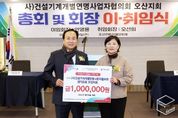 e데일리뉴스 | 오산시는 사단법인 건설기계개별연명사업자협의회 오산지회가 저소득 취약계층 지원을 위한 이웃돕기 성금 100만 원을 기탁했다고 밝혔다. 이번 성금은 지난 9일 오산컨벤션웨딩뷔페에서 열린 건사협 오산지회 정기총회에서 마련된 것으로, 총회 행사의 일환으로 지역사회 나눔 실천을 위해 전달됐다. 기탁된 성금은 사회복지공동모금회를 통해 오산시 관내 취약계층의 겨울나기를 돕는 데 사용될 예정이다. 이날 정기총회에서는 지난 10년간 오산지회를 이끌어온 안영용 회장에 이어 오선희 회장이 신임 회장으로 취임했다. 오선희 회장은 “앞으로도 지역사회의 일원으로서 회원들과 함께 나눔과 봉사 활동을 지속하며 따뜻한 지역사회를 만드는 데 힘쓰겠다”고 밝혔다. 행사에 참석한 이권재 오산시장은 “건사협 회원 여러분들의 노고 덕분에 오산의 경제와 산업이 더욱 활기차게 발전하고 있으며, 더욱 안전한 산업 현장이 되어 가고 있다”며 감사의 말을 전했다. 한편, 건사협은 건설기계 사업자의 권익 보호는 물론, 국토교통부가 지정한 조종사 안전교육 등 전문 안전교육을 시행하는 단체로, 건사협 오산지회는 성금 기탁과 각종 봉사