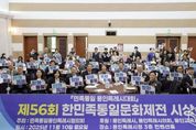 e데일리뉴스 | 용인특례시는 10일 시청 컨벤션홀에서 민족통일 용인특례시협의회 주관으로 ‘민족통일 용인특례시대회와 제56회 한민족통일문화제전 시상식’이 열렸다고 밝혔다. 이날 행사는 한반도의 평화와 통일을 주제로 한 글짓기·웹툰·포스터·사진 공모전의 입상작을 시상하고, 유공회원에게 표창을 수여하고자 마련됐다. 민족통일 용인특례시협의회는 1981년 창립한 단체로 매년 태극기 나눔을 비롯해 지역사회 통일운동 의식 제고 등을 위한 다양한 활동을 벌이고 있다. 이날 협의회는 홍보자료 시청, 통일 관련 동영상과 남북 언어 차이에 대한 학습자료를 시청하고 간단한 통일 퀴즈대회를 거쳐 우수 작품 3개를 낭독했다. 이어진 시상식에서는 용인특례시장상 3명 등 총 36명이 수상의 영예를 안았다. 유한종 민족통일 용인특례시협의회장은 “민족의 염원인 한반도 평화통일을 위해 어려운 여건 속에서도 적극 지원해 주시는 이상일 시장님께 감사드린다”며 “대한민국 통일의 그 날이 올 때까지 협의회 회원의 뜻을 한데 모아 더욱 적극 활동하겠다”고 했다. 이상일 시장은 “대한민국이 한국전쟁의 비극을 이겨내고