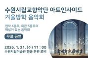 e데일리뉴스 | 경기도 수원시립미술관은 겨울방학을 맞아 1월 21일 음악회와 이벤트를 수원시립미술관 행궁 본관에서 개최한다. 1월 21일 오전 11시에 수원시립교향악단 아트인사이드 '겨울방학 음악회'가 무료로 개최된다. 현악 4중주와 목관 5중주의 해설이 있는 음악회로 상생스의 모음곡 '동물의 사육제' 중 백조, 피아졸라의 '노래와 푸가', 영화 '여인의 향기' OST 중 탱고 ‘간발의 차이로’, 히사이시조의 '하울의 움직이는 성' OST 중 ‘인생의 회전목마’등을 연주한다. 또한 다양한 관람객 참여 이벤트를 개최한다. 10시부터 11시까지 현장에서 누구나 참여 가능한 룰렛 이벤트를 통해 미술관 기념품, 음료, 사탕 등을 경품으로 받을 수 있다. 오후 2시에는 선착순 50명을 대상으로 즉석 사진 촬영 이벤트가 진행한다. 룰렛 이벤트는 2월 6일까지 오전 10시 30분, 오후 1시 총 2회 계속된다. 수원시립미술관 남기민 관장은 “겨울방학을 수원시립미술관의 전시와 공연을 통해 따듯하게 추억할 수 있는 시간이 되길 바란다”라고 말했다.