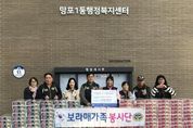 e데일리뉴스 | 수원시 영통구 망포1동은 지난 20일, 보라매가족봉사단에서 관내 저소득층에게 지원해달라며 컵라면(6개입) 200박스를 후원했다고 밝혔다. 공군전우회 봉사 모임인 보라매가족봉사단은 망포1동의 어려운 이웃을 위해 꾸준히 후원을 해오고 있으며, 특히 이번 후원은 매월 나눔활동을 하고 있는 보라매가족봉사단의 100회째 나눔활동이며, 봉사단체가 결성된지 100개월이 되어 더욱 뜻깊은 후원이 됐다. 전달식에 참석한 오남칠 단장은 “100번째 후원이라 어려운 이웃들에게 더 많은 응원을 드리고 싶었다. 컵라면의 따뜻한 온기처럼 조금이라도 힘이 되기를 희망하며, 앞으로도 취약 계층에게 실질적인 위로와 도움이 되도록 꾸준히 나눔을 이어가겠다”며 후원의 뜻을 밝혔다. 이에 김영희 망포1동장은 “100이라는 숫자가 갖는 온전한 충만함처럼 오랜 시간 진정성 있는 나눔을 실천해주신 보라매가족봉사단 단장님과 회원님께 진심으로 감사 드린다. 100번째의 사랑이 어려운 이웃들에게 잘 전달될 수 있도록 하겠다”며 감사 인사를 전했다.