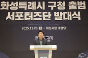 e데일리뉴스 | 화성특례시의회는 20일, 화성시청 대강당에서 열린 ‘화성특례시 구청 출범 서포터즈단 발대식’에 참석해 시민과 함께하는 새로운 구청 체제 출범 준비의 의미를 공유했다. 이날 발대식에는 배정수 의장을 비롯해 시민 서포터즈단 등 총 330여 명이 자리했으며, 2026년 2월 화성특례시 4개 구청 신설을 앞두고 시민참여 기반을 다지는 공식적인 출범 행사로 마련됐다. 이번 행사는 ▲개회 및 국민의례 ▲구청 추진 경과 공유 ▲서포터즈 역할 안내 ▲구별 시민 대표 8명에 대한 위촉장 수여 ▲서포터즈단 소감 발표 ▲구청 체제 오리엔테이션 등으로 진행됐다. 특히 ‘2040 도시기본계획으로 보는 화성의 미래’, ‘도시비전 트렌드와 시민참여의 의미’ 등 전문 강연을 통해 향후 구청 체제가 지역행정과 생활에 가져올 변화가 소개되며 시민 호응을 얻었다. 배정수 의장은 “구청 출범은 시민이 체감할 수 있는 밀착형 생활행정의 본격적인 시작”이라며 “300명의 시민 서포터즈단이 지역의 요구와 비전을 현실적 정책으로 연결하는 핵심 주체가 될 것”이라며 축하했다. 한편, 서포터즈단은 2025년 11월