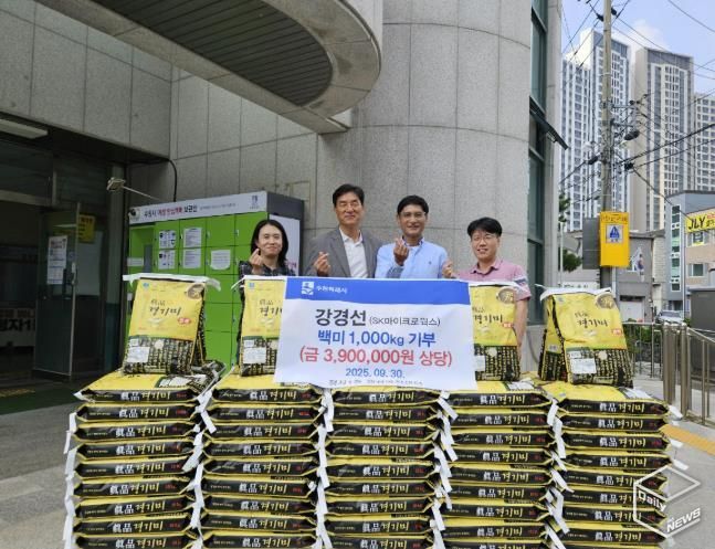 e데일리뉴스 | 수원시 장안구 정자1동에 소재하는 SK마이크로웍스 소속 강경선 부장은 민족의 대명절인 추석을 맞아 지역 내 어려운 이웃들에게 따뜻한 나눔을 전하기 위해 지난 30일 정자1동행정복지센터에 쌀 1,000kg을 기부했다.