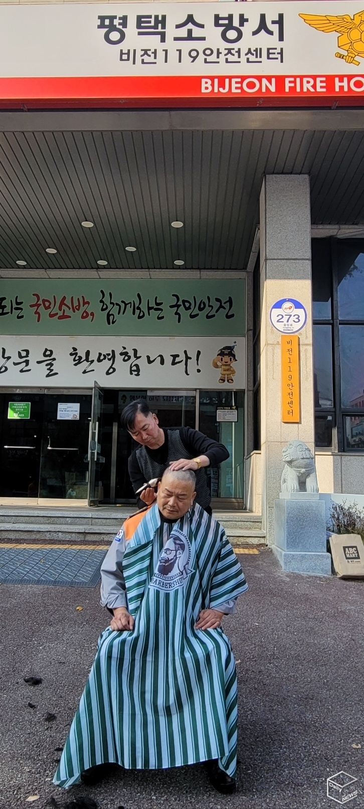 경기도남성의용소방대연합회장이자 평택소방서 남성의용소방대연합회장인 신희철 회장이 지난달 31일 평택소방서 앞에서 김진학 서장의 독단 행정과 불통 행태에 항의하며 삭발식에 이어 1인 시위에 돌입했다.