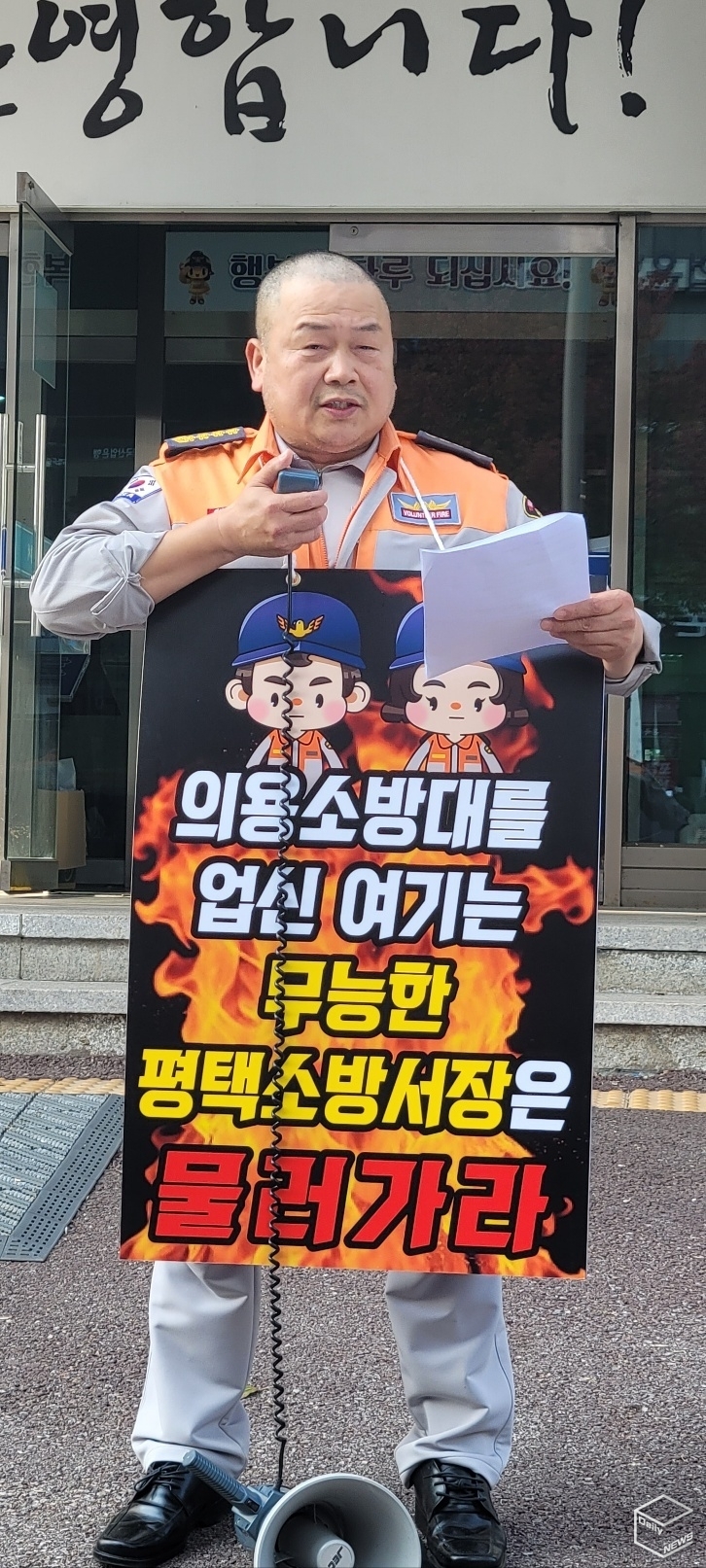 신 회장은 3일부터 29일까지 평택소방서 인근에서 옥외집회와 1인 시위를 이어갈 계획이다.