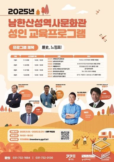 e데일리뉴스 | 경기문화재단 남한산성역사문화관은 오는 11월 13일부터 12월 4일까지 매주 목요일, 성인을 대상으로 한 인문 교양 프로그램 〈歷史(역사), 느낌표!〉를 운영한다. 이번 프로그램은 세계유산 남한산성의 역사와 문화를 다양한 관점에서 탐구하며, 세계유산의 가치를 이해할 수 있도록 기획됐다.
