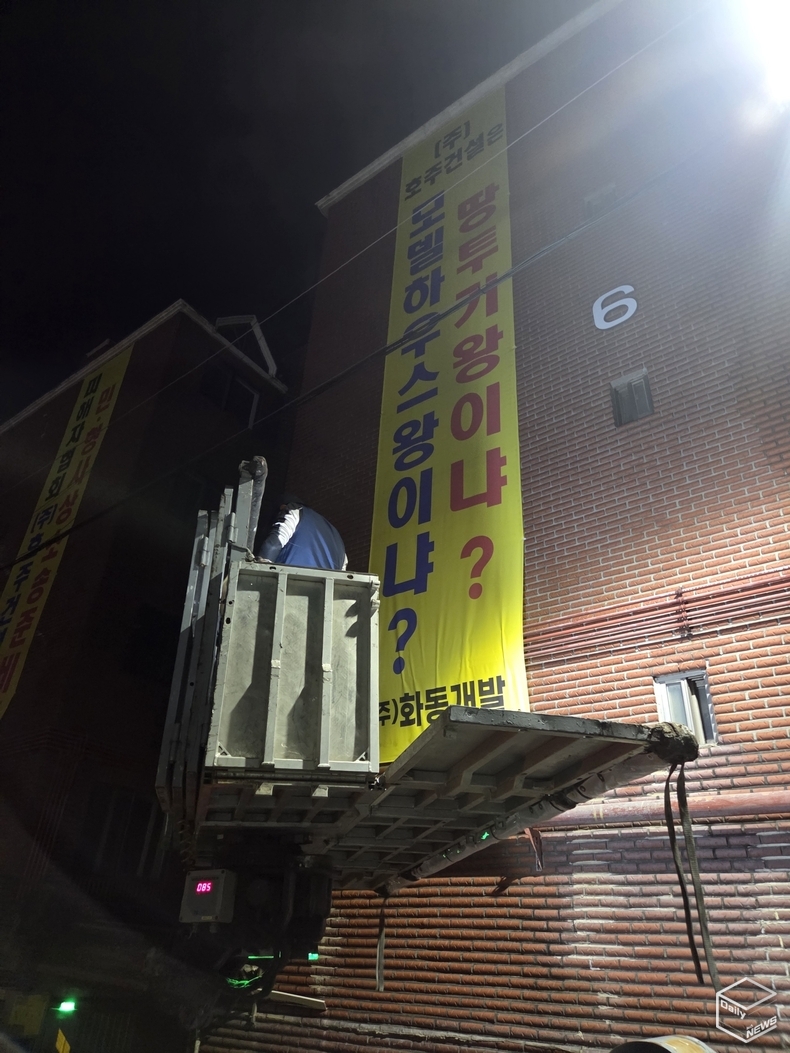 화동개발은 H건설의 행태를 공론화하기 위해 10월 2일 용인서부경찰서에 적법하게 옥외집회를 신고한 뒤, 사업지 인근에 ‘H건설은 땅투기 왕이냐’ 등의 문구가 적힌 현수막을 게시했다.