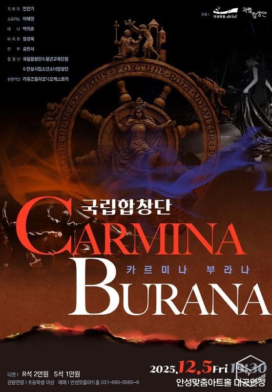 e데일리뉴스 | 안성맞춤아트홀은 오는 12월 5일 오후 7시 30분, 대공연장에서 국립합창단이 선보이는 칼 오르프의 칸타타〈카르미나 부라나'를 공연한다. 이번 무대는 약 200명의 출연진이 참여하는 대규모 무대로, 안성 시민에게 웅장한 음악적 감동을 선사할 예정이다.
