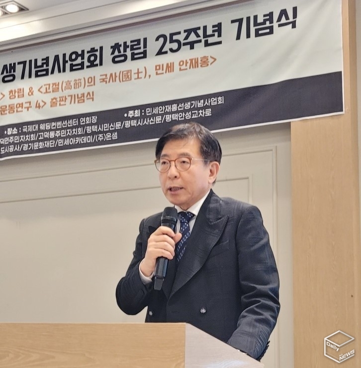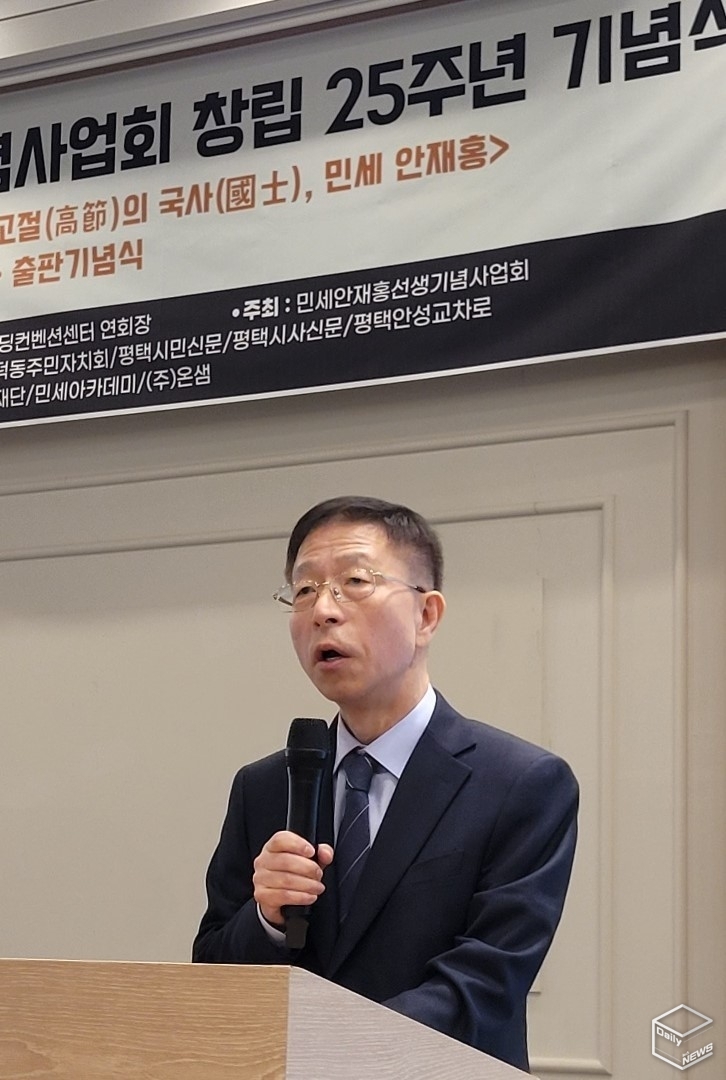 e데일리뉴스 | [평택=강경숙 기자] (사)민세 안재홍 기념사업회(회장 강지원)가 12일 평택 국제대 웨딩켄벤션센터에서 창립 25주년 기념식을 열고 민세학연구소 출범과 「고절의 국사 민세 안재홍」 평전 출판을 공식 발표했다.