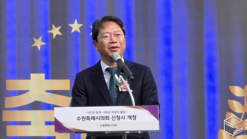 이재준 수원특례시장은 “많은 도시가 자체 청사를 갖고 있으나 수원특례시의회는 그동안 독립 청사가 없었다”며 “논의 10년, 첫 삽을 뜬 지 4년 만에 역사적인 개청을 맞았다”고 평가했다. 또한 의회와 시청을 잇는 연결 통로에 대해 “협치의 상징성을 담아 ‘수원 협치교’로 불리길 소망한다”며 의회–집행부 간 협력의 중요성을 강조했다.