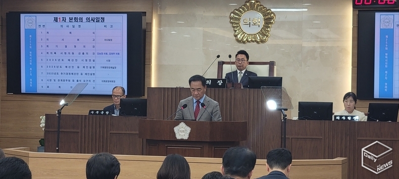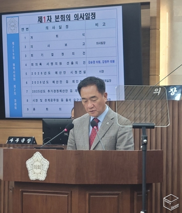 e데일리뉴스 | [평택=강경숙 기자] 정장선 평택시장이 26일 평택시의회 본회의장에서 열린 ‘제259회 평택시의회 제2차 정례회’에서 임기 중 마지막 시정연설을 통해 2026년도 예산안과 내년도 시정 운영 방향을 제시했다.