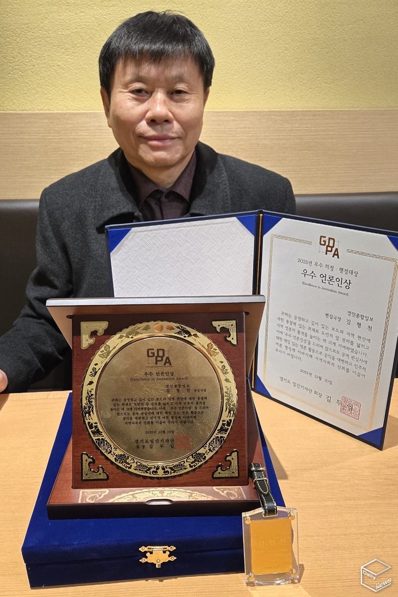 e데일리뉴스 | [경기도=강경숙 기자] 김형천 경인종합일보 편집국장이 경기도일간기자단이 선정한 ‘2025 우수 언론인상(Excellence in Journalism Award)’을 수상하며, 40여 년에 걸친 언론 활동과 공정한 보도, 지역 현안 발굴 공로를 인정받았다.