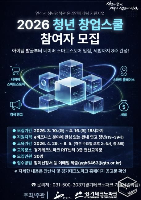 e데일리뉴스 | 안산시는 e비즈니스 분야 청년 창업자의 안정적인 시장 진입과 사업 운영을 지원하기 위해 ‘청년 창업스쿨’ 참여자를 모집한다고 10일 밝혔다.