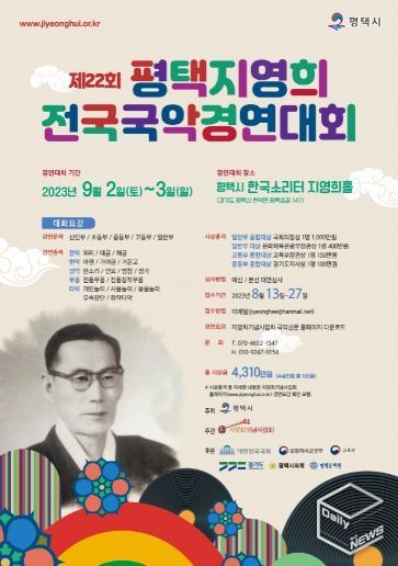 오는 9월 2일과 3일 이틀에 걸쳐 한국소리터에서 지영희홀에서 치러지는 ‘제22회 평택지영희전국국악경연대회’에서는 그 어느 때보다 접수자가 많이 몰려 265팀 325명이라는 국악인이 경연에 참가한다. 올해 경연 참가자는 지난해보다 무려 72팀 102명이 증가한 수치다.