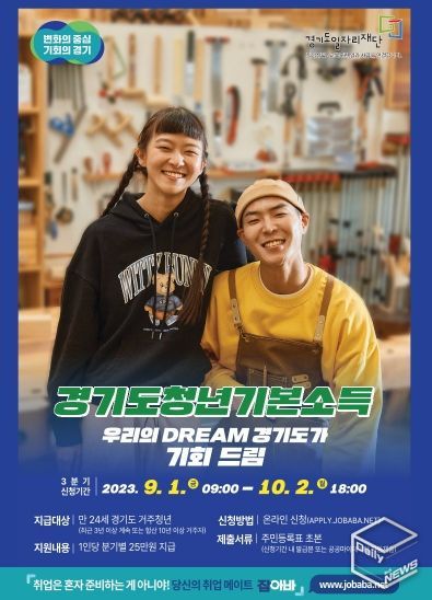 신청은 경기도 일자리지원사업 통합접수시스템 잡아바에서 가능하며, 9월 1일 이후 발급한 주민등록초본을 첨부해 신청서를 작성해야 한다.