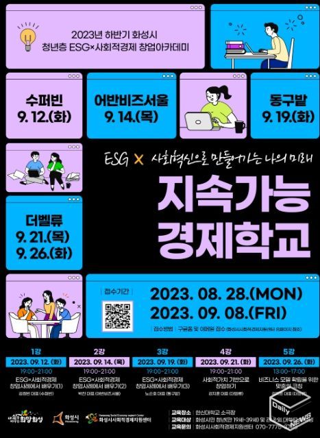 e데일리뉴스 | 화성시가 2023년 하반기 화성시 ESG×사회적경제 창업아카데미의 수강생을 모집한다. 모집 과정은 ‘지속가능경제학교과정’과 ‘화성SE相온라인과정’이다.