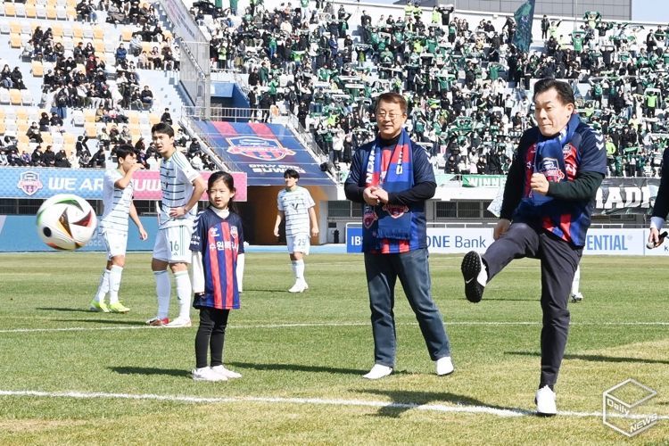 e데일리뉴스 | 수원FC 구단주인 이재준 수원시장이 9일 수원종합운동장에서 열린 수원FC의 홈 개막전에서 시축하고, “수원FC의 위대한 여정에 함께하겠다”고 말했다.