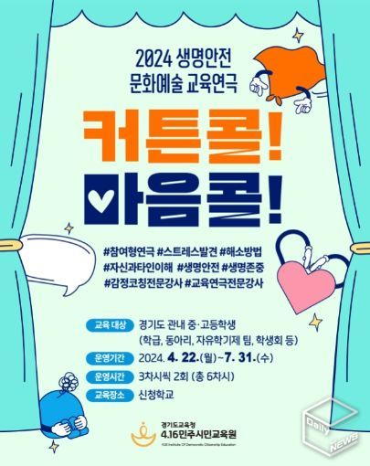 e데일리뉴스 | 4.16민주시민교육원(원장 전명선)이 오는 7월 31일까지 경기도 관내 중·고등학생을 대상으로 생명 안전 교육연극 ‘커튼콜, 마음콜’ 프로그램을 운영한다.