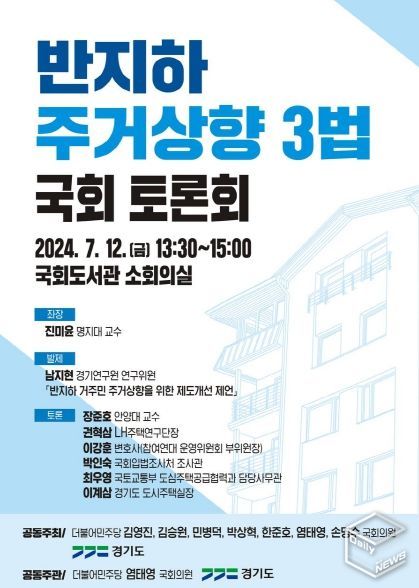 e데일리뉴스 | 경기도가 국회의원 7명과 공동으로 반지하 거주민 주거상향을 위한 합리적 제도개선안 마련을 위한 토론회를 연다.