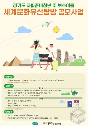 e데일리뉴스 | 경기도가 도내 15세 이상 보호아동과 자립준비청년에게 해외경험 기회를 제공하는 ‘세계문화유산탐방’ 사업을 추진한다.