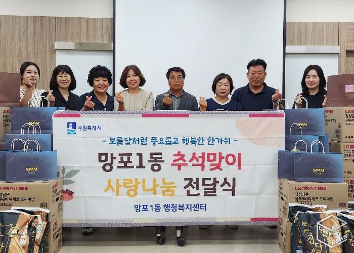 김영희 망포1동장은 “따뜻한 망포1동을 만들고자 소중한 마음을 모아주신 후원자분들에게 감사드린다. 필요한 가구에게 후원품이 잘 전달될 수 있도록 하겠다.”라고 전했다.