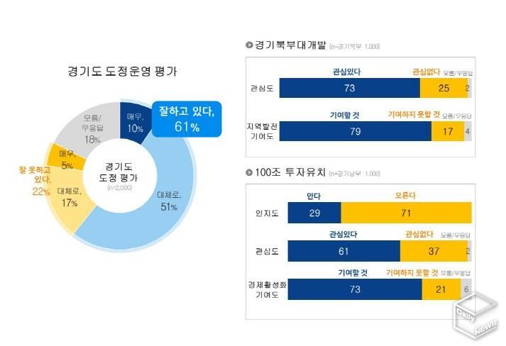 e데일리뉴스 | 경기도민 10명 중 6명이 도정 운영을 긍정적으로 평가한 것으로 나타났다.
