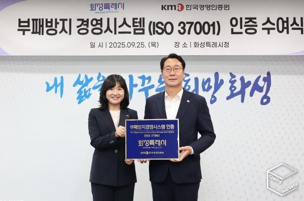 e데일리뉴스 | 화성특례시가 국제표준화기구(ISO)에서 제정한 부패방지경영시스템 (ISO37001) 인증을 획득했다.