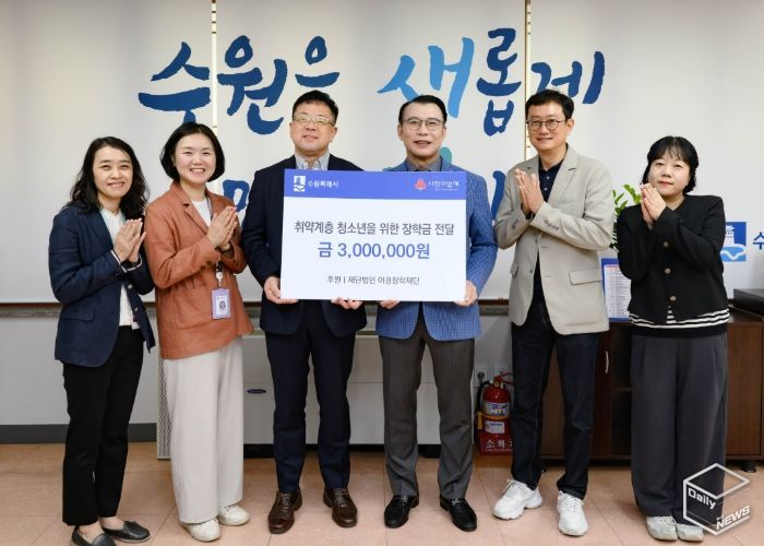 아경장학재단은 지난해 8월에도 수원시에 취약계층 중·고등학생을 위한 장학금 300만 원을 기탁한 바 있다.