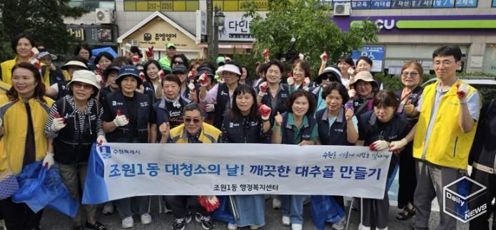 e데일리뉴스 | 수원시 장안구 조원1동은 추석과 APEC을 맞아 추진 중인 국민 참여 운동인 「대한민국 새단장」 캠페인의 일환으로 추석맞이 대청소를 실시했다.